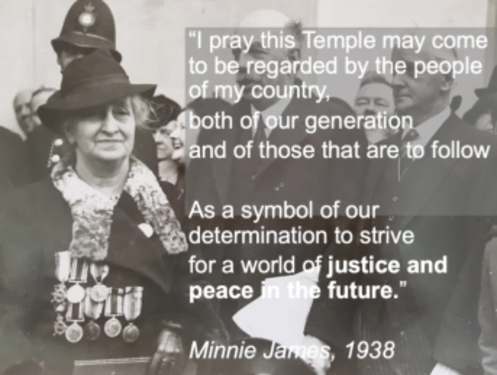 On 23 November 1938, Wales’ Temple of Peace & Health – WCIA’s home today – was opened by Minnie James of Merthyr Tydfil (who had lost 3 sons to WW1), representing war bereaved mothers of Wales and the world. The Temple was to be the nation’s memorial to the fallen and – as a ‘living memory’ to honour their loss – headquarters to movements that woudl lead Welsh efforts to build peace, health and international cooperation for future generations.