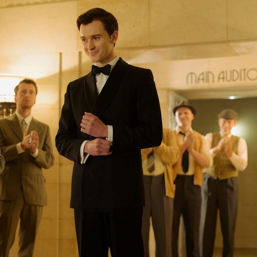 Harry Lawtey as the young Richard Burton, with the vestibule of Wales’ Temple of Peace recreating the art deco heyday of Stratford’s Royal Shakespeare Theatre. Image – Icon Film Distribution
