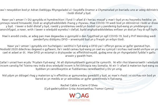 Rydym yn cynrychioli’r sector undod byd-eang yng Nghymru.