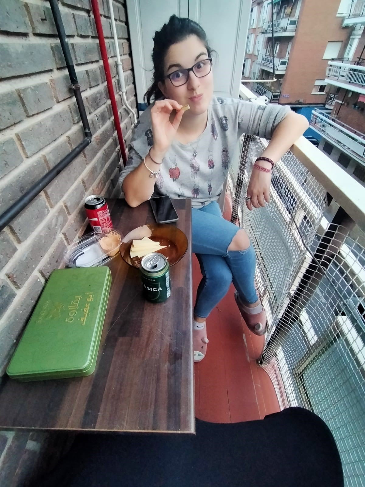 “First in Italy, then in Spain, a tradition has been started: at a given time, decided on social media (8 p.m. here in Madrid) we are stepping out on the balcony to clap, in honour of doctors and nurses and their huge work. Even if it lasts only a few minutes, it gives you a sense of community.