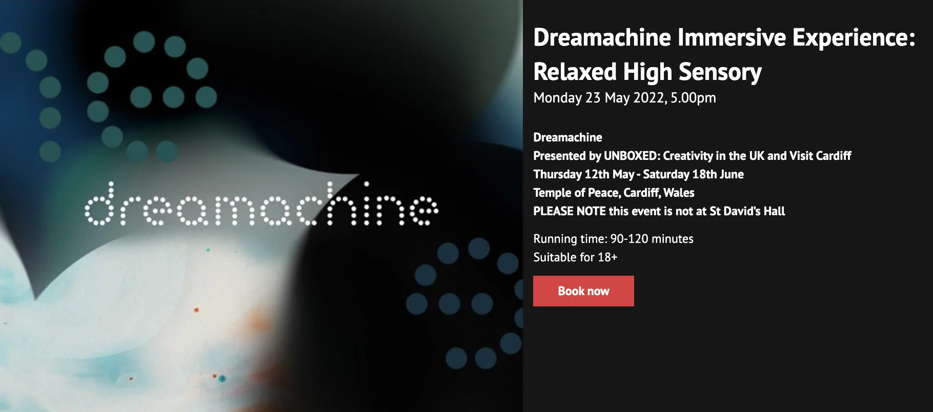 [efsbutton size=”” color_class=”” align=”left” type=”link” target=”false” title=”Book Here” link=”https://www.stdavidshallcardiff.co.uk/dreamachine-immersive-experience-collective-act-and-unboxed-creativity-in-the-uk-presents-dreamachine/?utm_source=dreamachine&utm_medium=website&utm_campaign=launch”]